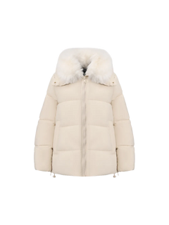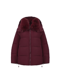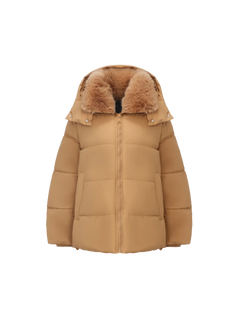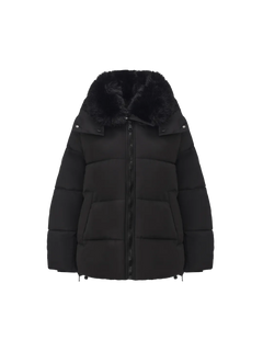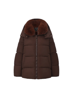 WarmCore™Faux Fur Collar Puffer With Detached Hood,Removable Faux Fur Collar